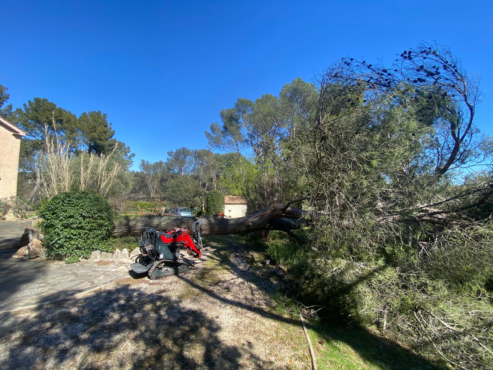Les épisodes climatiques deviennent plus intenses, et les arbres, parfois fragilisés, peuvent céder sous l’effet du vent. Les interventions pour arbres tombés après tempête sont aujourd’hui fréquentes, notamment dans les Bouches-du-Rhône et le sud du Vaucluse. Dans tous les cas, la logique reste la même : sécuriser rapidement, puis traiter le chantier dans sa globalité.